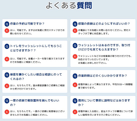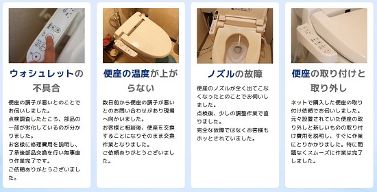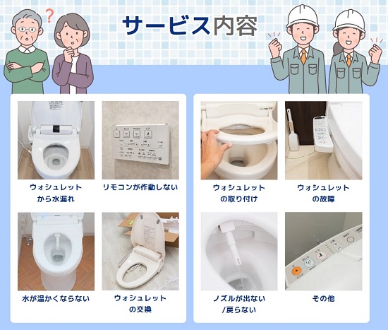 杉並区で対応可能な温水便座、ウォシュレットの修理サービスとなります。その他のトラブルやご相談に関しましてはお気軽に受付窓口までお問い合わせください。